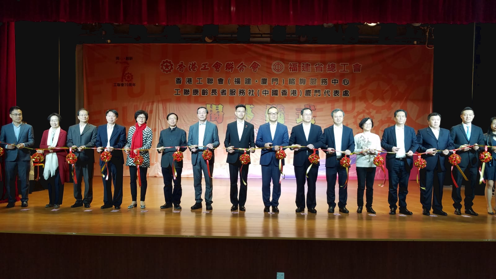 香港工會聯合會 (下稱工聯會) 一直致力為在內地的香港人提供各項諮詢服務,在福建省總工會及廈門市總工會的鼎力支持下,工聯會終於在廈門開設香港工聯會 (福建.廈門) 諮詢服務中心、工聯康齡長者服務社 (中國.香港) 廈門代表處 (下稱福建中心),並在今天 (12月12日) 揭幕,標誌著工聯會在內地的服務正式擴展到福建省,為居住在福建的港人提供服務和支援。 為了隆重其事,工聯會邀請了以下嘉賓出席揭幕典禮,包括:中華全國總工會副主席、書記處書記江廣平,福建省人大常委會副主任、省總工會主席黃琪玉,廈門市政協主席張健,中華全國總工會澳台領導小組辦公室主任彭勇,中央駐香港聯絡辦公室秘書長文宏武,福建省委統戰部副部長陳飛,福建省台港澳辦副主任劉良輝,福建省總工會黨組成員、副主席柳公立,廣東省總工會副主席楊敏,廈門市委常委、自貿區管委會主任、市總工會主席倪超,香港政府駐粵經濟貿易辦事處副主任陳偉烈,香港政府駐福建聯絡處主任趙碧菁。工聯會會長吳秋北及榮譽會長林淑儀和陳婉嫻、香港工聯康齡長者服務社主席潘佩璆作東邀請,廣東省多個市總工會代表,香港多個工會負責人均應邀出席典禮,共慶福建中心的設立和投入服務。 吳秋北在致辭時表示,福建中心今天正式揭幕,意味著工聯會的服務將涵蓋整個福建省,更標誌著工聯會在內地的工作邁向新的里程。他感謝所有現場嘉賓撥冗出席揭幕典禮,並感謝福建省總工會及廈門市總工會在籌備開設福建中心過程中所提供的協助及支持。 隨著香港與內地的交往日漸頻繁,港人到內地投資、工作、學習及定居的人數不斷上升。為更好地協助及服務在內地的港人,工聯會自2004年起,在廣東省總工會統籌和協調,以及廣州市總工會、深圳市總工會、東莞市總工會、惠州市總工會及中山市總工會等鼎力支持下,分別在廣州、深圳、東莞、惠州和中山市成立內地諮詢服務中心,14年來為在內地工作、生活、經商、就學的港人,提供諮詢及緊急援助服務。今年4月,工聯會成功促使香港特區政府實施「福建計劃」,福建中心將為有需要申領「福建計劃」香港長者服務,包括協助填寫及遞交申請表格、開設香港銀行戶口,開具效力的地址證明等工作。 隨着福建中心的成立,工聯會希望6個內地中心可以開展更多元化的服務,深入社區維繫更多在內地的港人,以更專業的服務回應港人的具體需要。