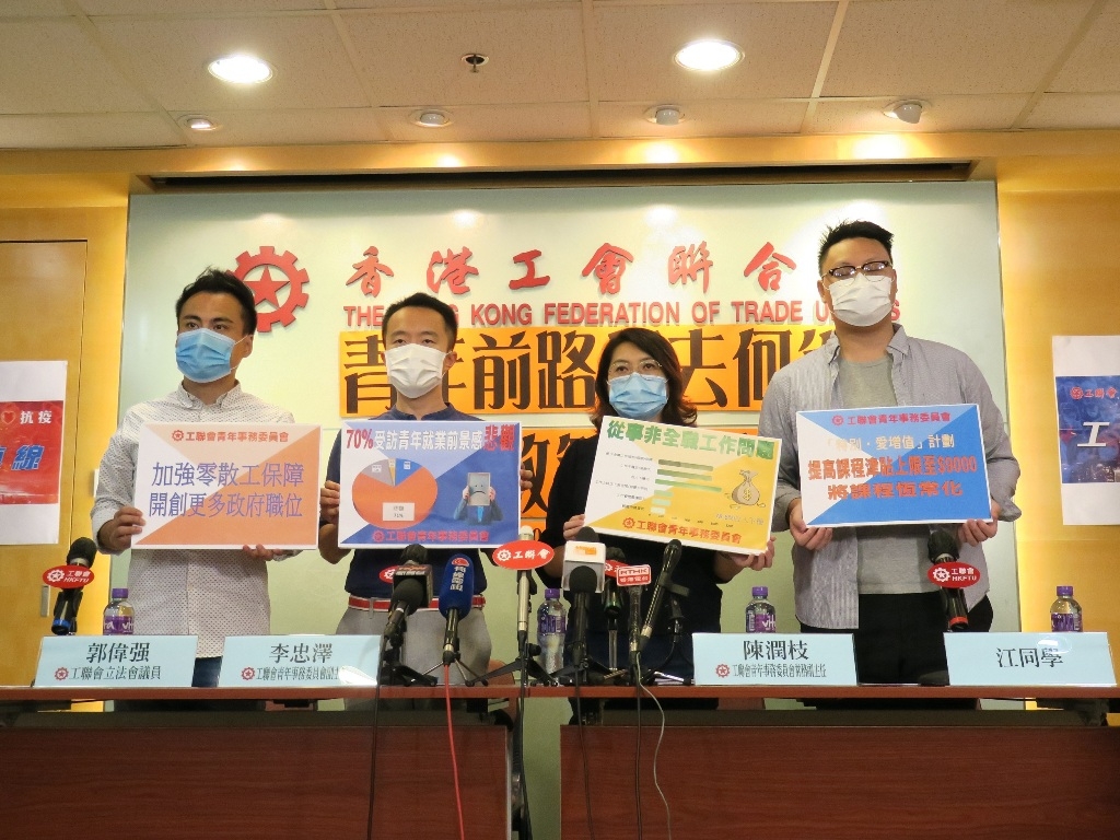新冠病毒持續衝擊本港經濟,工聯會青年事務委員會(下稱「工聯會青委」)問卷調查發現,近70%受訪香港青年表示疫情影響他們的生計,亦認為從事非全職工作缺乏保障。工聯會青委建議政府應加強零散工保障、增設培訓課程、創造更多職位、改善展翅青見計劃及提供生活補貼。