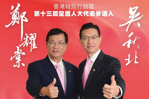 鄭耀棠、吳秋北角逐連任香港特別行政區第十三屆全國人大代表
