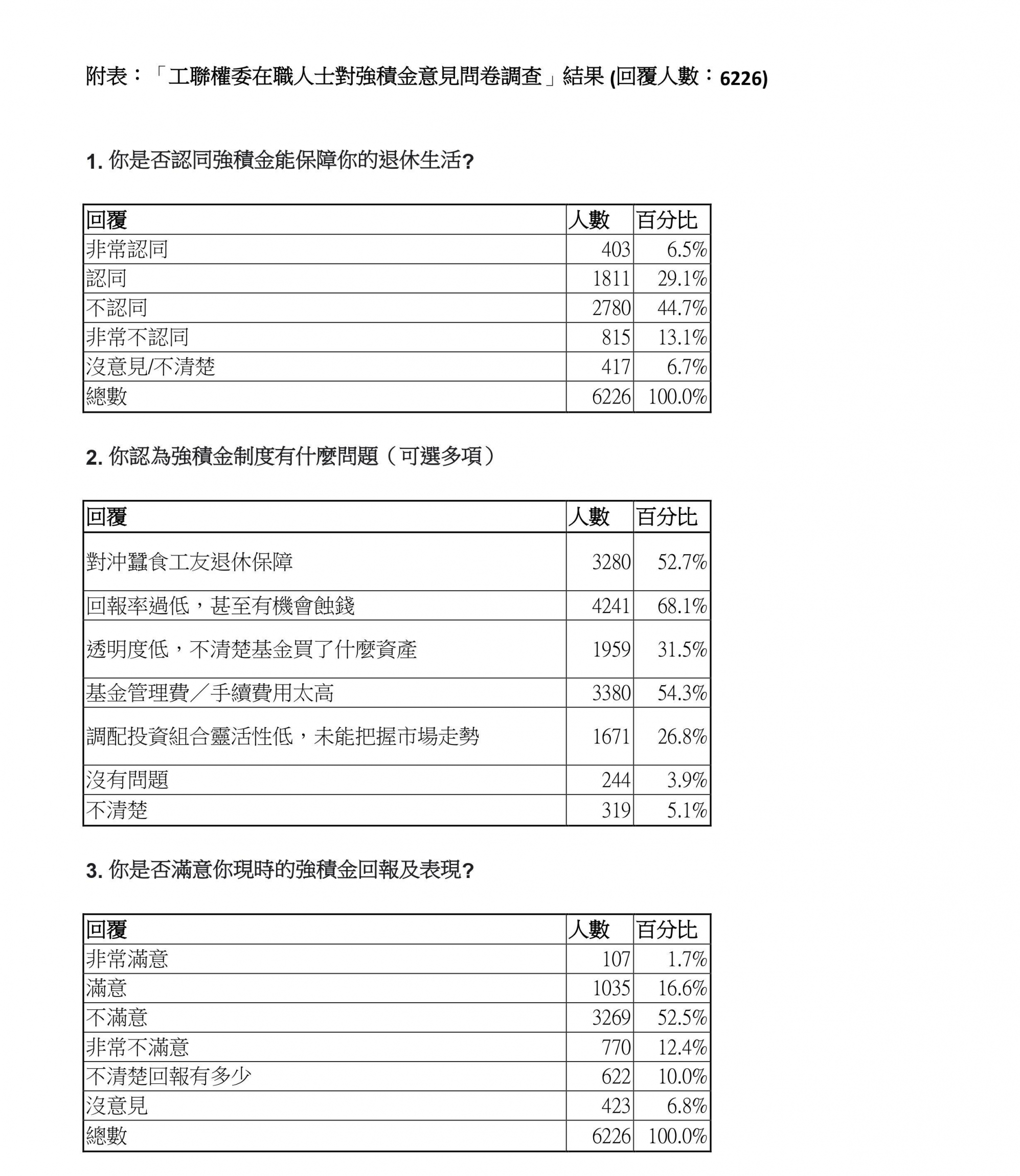強制性公積金計劃(強積金)今年實施20周年,但此保障香港打工仔女退休生活重要支柱卻未能令僱員安心退休。香港工會聯合會權益委員會(工聯權委)今日(10月5日)發布的網上問卷調查結果顯示,約58%受訪在職人士不認同強積金可保退休生活,近65%不滿或非常不滿強積金回報。工聯權委指,調查顯示追不到通脹及市場回報是僱員不滿主因,因此政府應負回社會道德責任,另設有保證回報強積金計劃,而調查亦正好反映,若推出政府負責營運有保證回報產品,近79%受訪者會考慮選擇。 為了解在職人士對強積金意見,工聯權委上月18日至25日透過網上問卷成功訪問6,226名在職並有供強積金人士。工聯會理事長黃國總結調查結果指,44.7%受訪者不認同強積金可保其退休生活,13.1%更對此說法表示非常不認同,「回報率過低,甚至有機會蝕錢」及「基金管理費太高」是最多人認為現行強積金計劃的問題。 另外,52.5%被訪者不滿意強積金回報及表現,12.4%更表示非常不滿意,涉及的4000多名受訪者中,超過72%認為追不到通脹是他們不滿強積金原因,管理費蠶食回報則是第二元兇。被問到如果推出政府負責營運的強積金基金產品,回報率預計與外匯基金複合年度回報率相近,高達56%及22.6%表示會考慮及很大機會考慮選擇;至於保證回報水平,近4成2人認為應定在跑贏通脹水平,3成人認為至少追到通脹。 政府承擔道德責任 引入良性競爭 黃國指,強積金涉及300多萬打工仔女切身利益,供款金額已滾存到近1萬億港元,如何令僱員退休保命錢更保本增值須檢討完善。他認為,打工仔女不太懂投資,以政府作受託人由外匯基金投資管理強積金並設保證回報是一個可取方案,至於保證回報定位等細節可進一步研究。 截至今年6月底,外匯基金管理總資產近4.2萬億港元,而1994年至去年外匯基金的複合年度投資回報率為4.8%,跑贏同期2.1%的通脹率。黃國強調,港府推出與通脹掛鈎或有保證回報產品概念早已存在,iBond就是好例子,而政府落水亦可為強積金市場帶來良性競爭,有望令私營基金受託人減收行政費及提升回報率,而且計劃不涉額外公帑開支,因此政府是時候承擔其社會道德責任。對於有政界人士倡議讓市民提取強積金應急,黃國指強積金累積款項有限,如提早領取,將更無法保障打工仔女退休生活,有違計劃原意。 跑輸通脹 工友憂退休生活 任文職的Amy表示投身職場已13年,由於自己對投資不熟悉,故只求強積金穩陣、有合理回報,但最近查閱強積金最新結存,發覺跑輸通脹,與期望有一定落差。Amy表示,自己尚有約30年才退休,故一直以「穩中求收益」為目標,超過6成強積金資產放在傾向保守型基金,其餘為中高風險基金,當見到強積金滾存跑輸通脹,她對強積金能否讓退休生活有基金保障感憂慮,而若政府推出有保證回報產品,她有興趣加入:「至少追到通脹,管理費又少啲,打工仔邊有咁多時間同知識管理MPF。」 自僱人士登記率低 保證回報增吸引力 工聯會權益委員會主任唐賡堯指,調查結果明確反映打工仔女要求優化強積金計劃,而強積金增值效果有限,對自僱人士欠吸引力,導致登記率偏低,根據積金局今年6月數字,29萬自僱人士只有不足22萬人登記,登記率僅約74%。可是,疫情期間政府多輪資助及津貼措施,偏偏規定自僱人士要有強積金戶口才符合資格申請,令大批自僱者無法受惠,若政府另推有保證回報強積金計劃,可提升自僱人士及自由工作者參與率,打工仔女亦多一項選擇。![]()