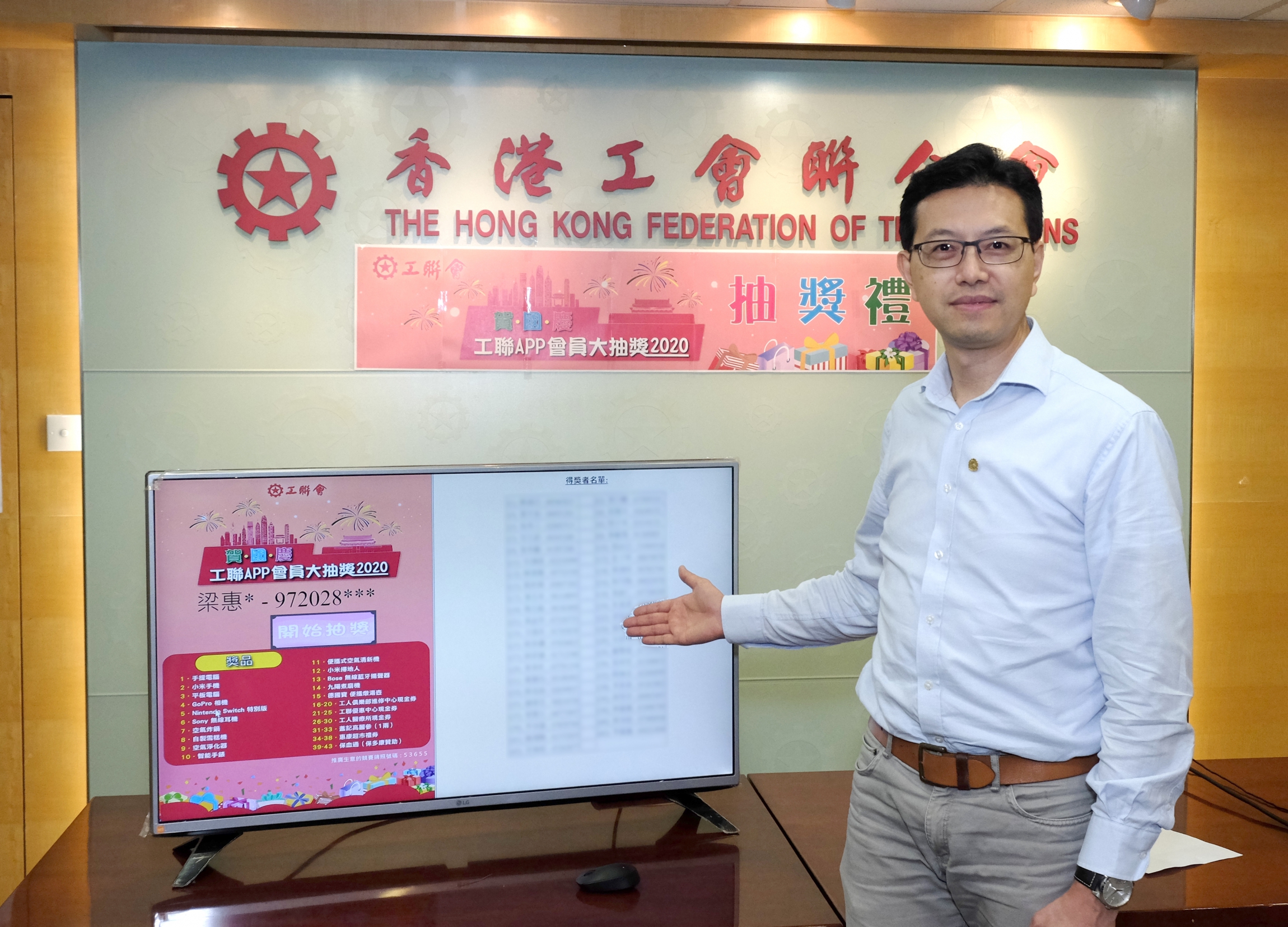多謝各位會員的參與,「賀國慶·工聯APP」會員大抽獎2020 活動已圓滿結束,並於10月5日(星期一)邀請本會會長吳秋北擔任抽獎嘉賓,以電腦隨機抽取出43名幸運兒,抽獎結果如下,恭喜各位中獎會員! *得獎者將獲專人致電通知領獎事宜。
