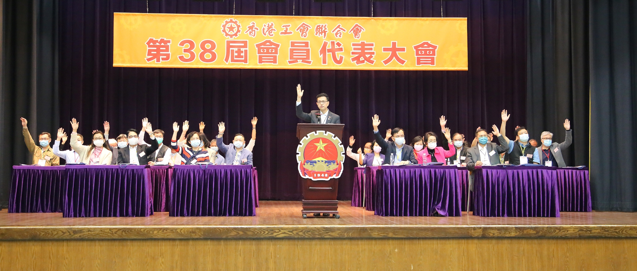 香港工會聯合會(工聯會)今天(28日)假座創知中學禮堂舉行第38屆會員代表大會,約五百名會員代表參與,還有工聯會立法會議員及列席代表出席。代表們通過上屆理事會工作報告,一同展望未來發展。今屆大會提出以「新時代 新工運:撐勞工、為基層、爭公義」為主題,擴大愛國團結、加強維權力度、推進改革創新,堅持勞工基層立場,擁護「愛國者治港」根本原則,推動融入國家發展大局,把握大灣區無限機遇,多方位提升福利服務,繼續為廣大打工仔福祉打拼,為香港繁榮穩定作出貢獻。