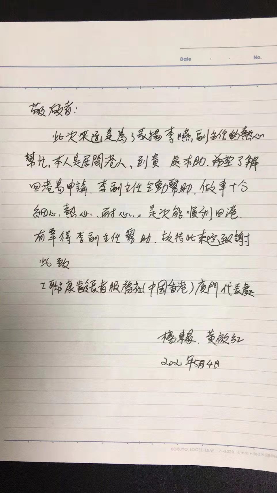 疫情下,防疫政策經常改變,內地港人要了解和適應,的確會遇到不少問題。工聯會福建諮詢服務中心//工聯康齡長者服務社(中國香港)廈門代表處分別在泉州文化宮及福建省總工會設立流動服務站,於4月24日、4月29-30日為當地港人提供貼心和針對性的服務。 很多港人都在活動當日一早抵達現場,因為有太多問題想找人幫忙處理!他們遇到的困難多是關於回港易、銀行戶口問題及福建計劃等。不少在閩港人表示,疫情下很久沒回港,雖然回港易已經擴展到福建,但經陸路回港,需要在廣東接受檢測,實在造成困擾,特別是長者。 楊先生夫婦特別感激福建中心幫助他們成功預約回港易,並且提供清晰詳細的指示,令他們可以順利回港,故特別寄出感謝信。類似的情況其實也不少,吳氏夫婦已滯留在閩超過一年,他倆都十分期昐回到香港家中,經咨詢後,他們決定坐飛機回港,在福建中心協助下成功預約回港易,同事的詳細解釋令他們對回港的路信心大增。同日亦有陳先生一家三口,4月30日活動後,成功預約回港易,並在5月3日已經順利回港。 參加活動的港人都十分歡迎福建中心這次的安排,希望能定期設立流動服務站,讓更多在閩港人能直接與福建中心職員接觸及咨詢,活動共有76港人到場,在福建中心的努力下,希望在閩港人回家的路都變得輕鬆。而且,今次幸得在泉州及福州的工聯義工鼎力支持,福州的義工黃先生更表示,以前經福建中心為母親申請福建計劃、現金計畫,現在他可以幫到有相同情況的港人,助人自助,擴闊生活圈子,十分開心。福建中心呼籲,在閩港人都可以加入工聯義工隊,齊齊服務內地港人!![]()