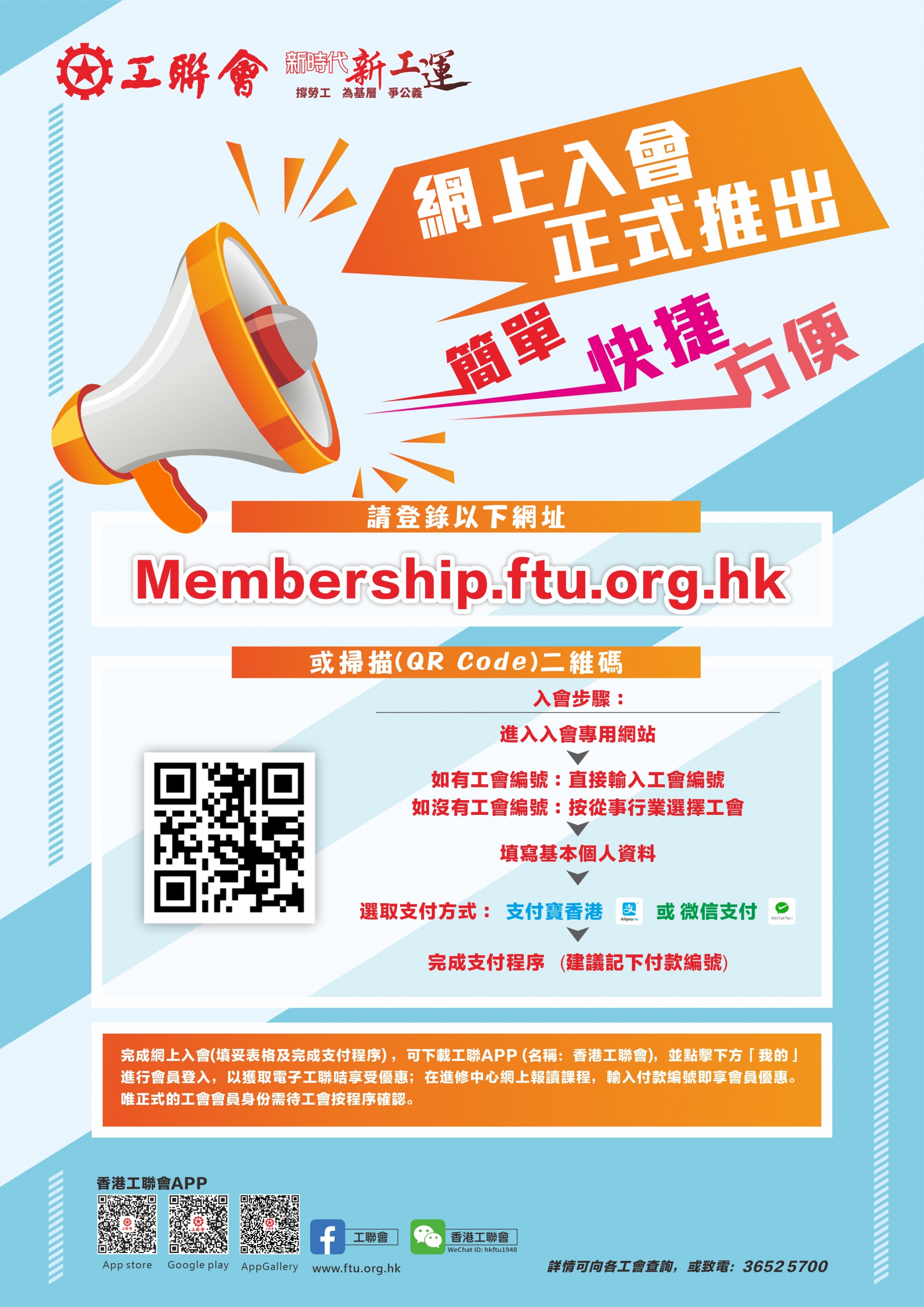 ,即可隨時隨地申請加入工聯會屬下工會成為會員,快人一步,享受各項會員福利優惠,詳情請參閱海報。
