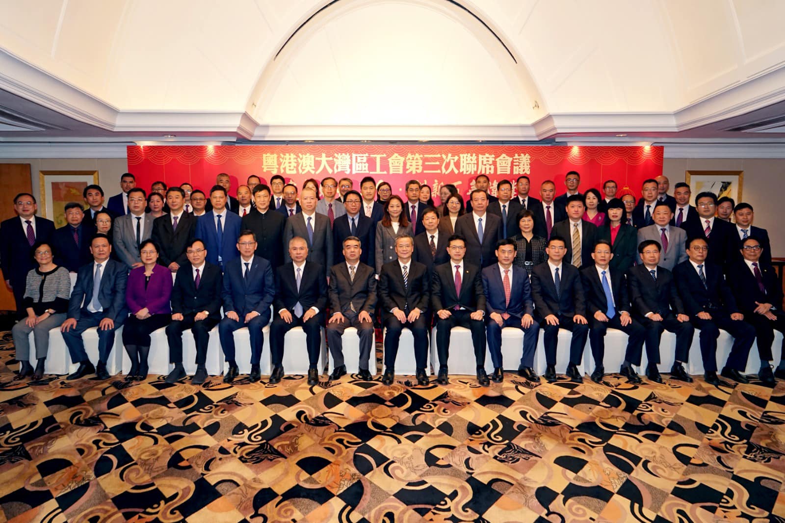 由香港工會聯合會(香港工聯會)輪值主辦的「粵港澳大灣區工會第三次聯席會議」今日在香港召開,會議主題為「建新時代工會 創新百年偉業」,共商工會深度合作,推進職工素質提升,為推動構建粵港澳大灣區高質量發展,實現中華民族偉大復興貢獻工會力量。全國總工會和粵港澳三地工會共有60多名主要代表出席。
