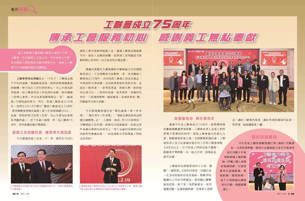 【工聯雙月刊 No.253】每月焦點:工聯會成立75周年 傳承工會服務初心 感謝義工無私奉獻