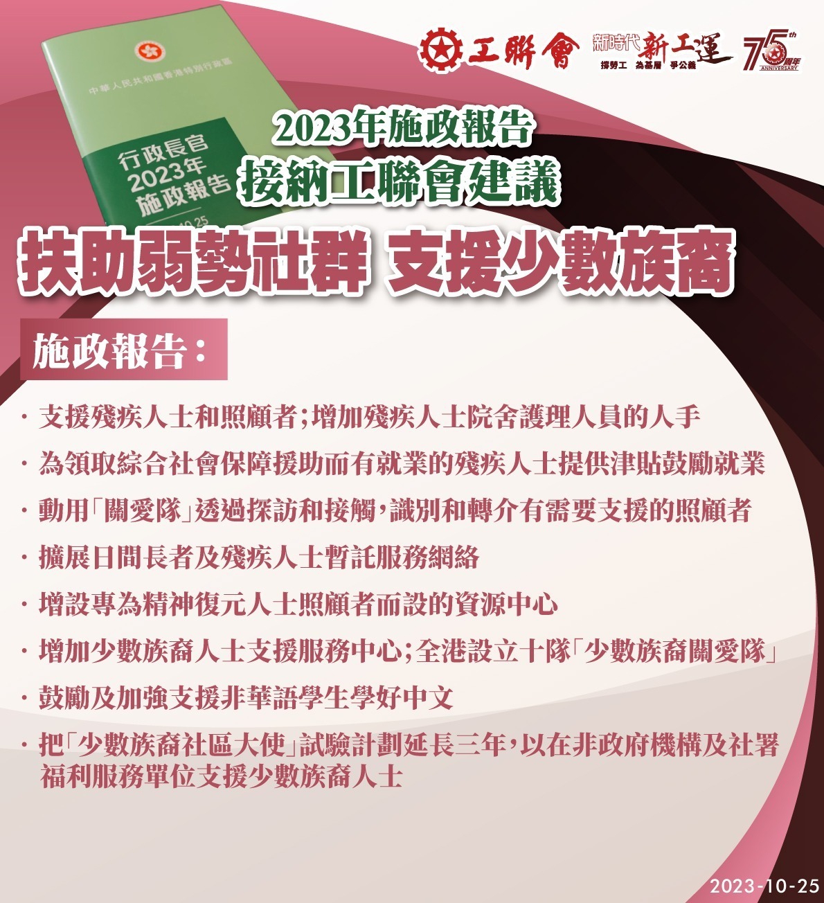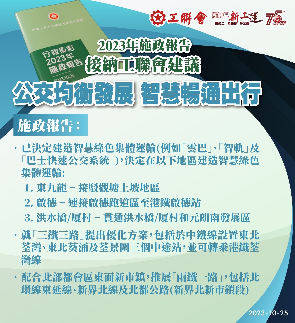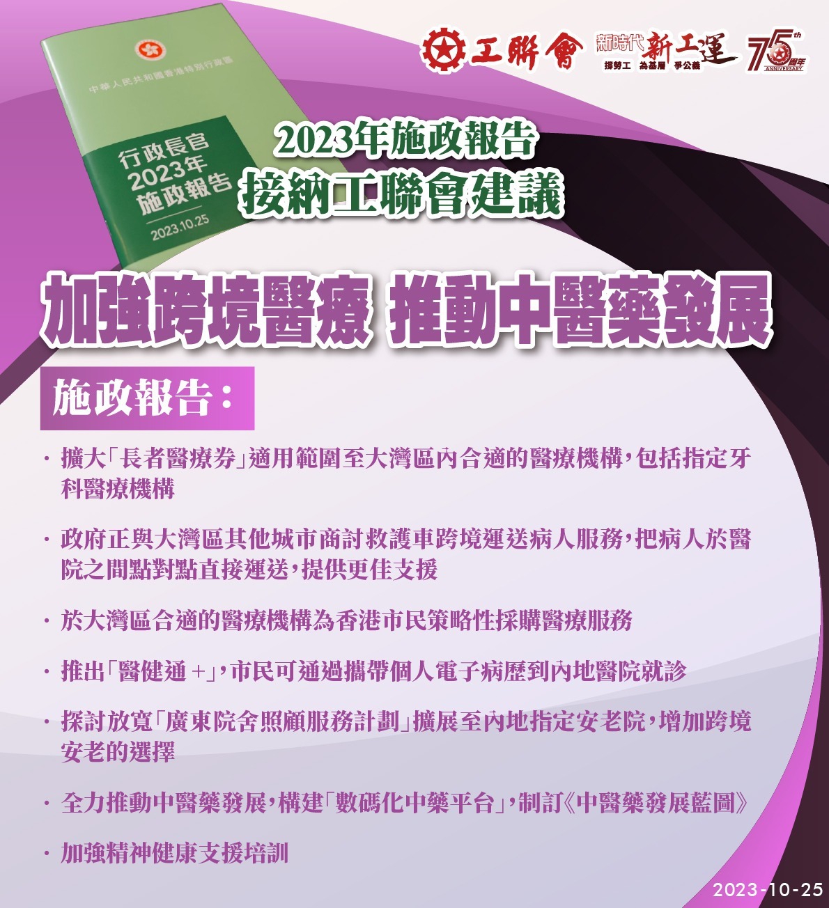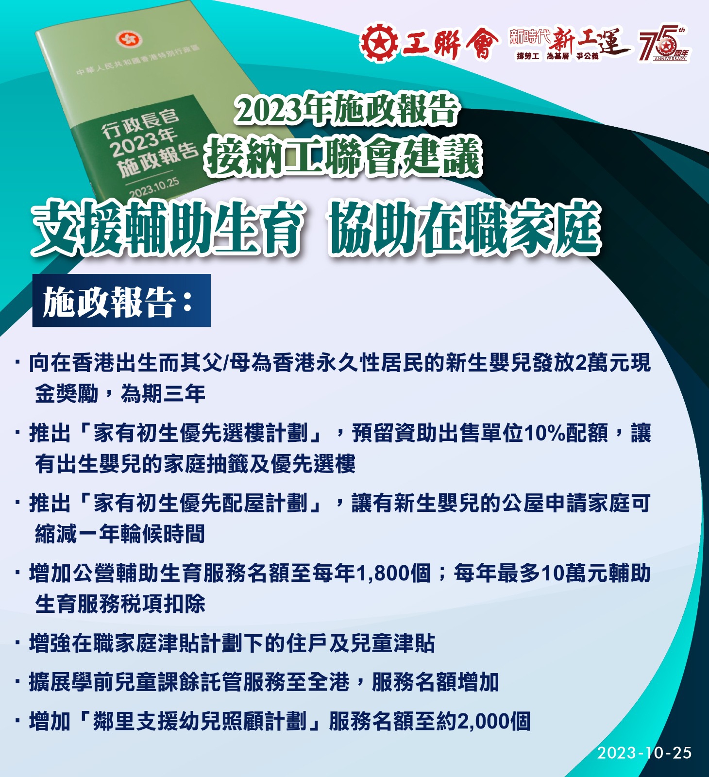 2023-10-25 工聯會歡迎特首李家超《2023年施政報告》從善如流 措施全面 增強信心
