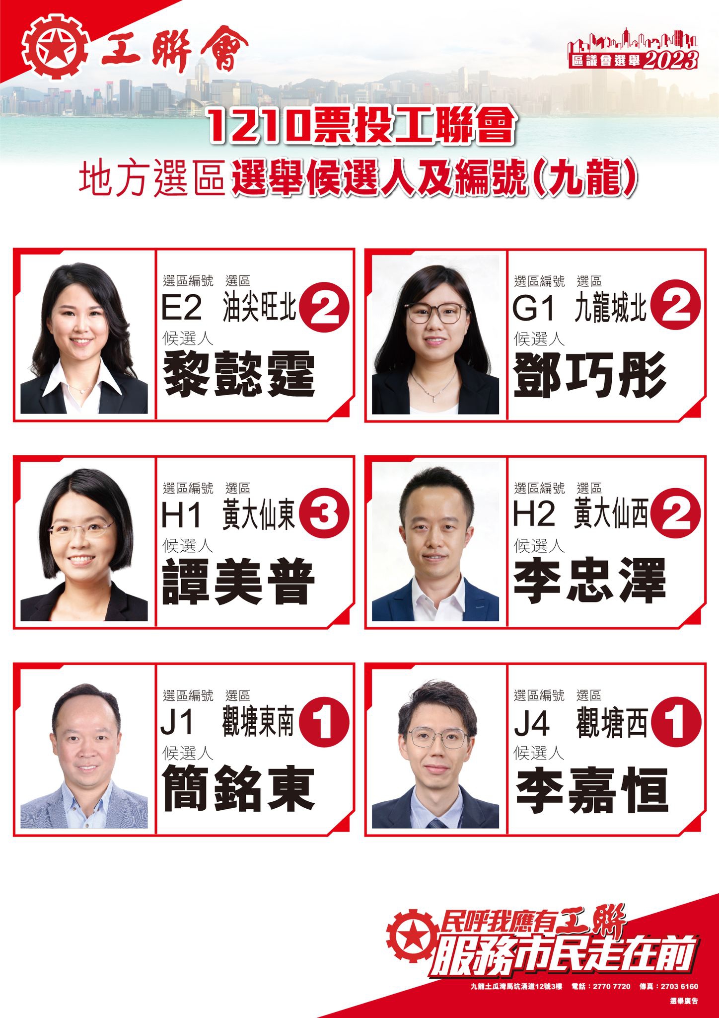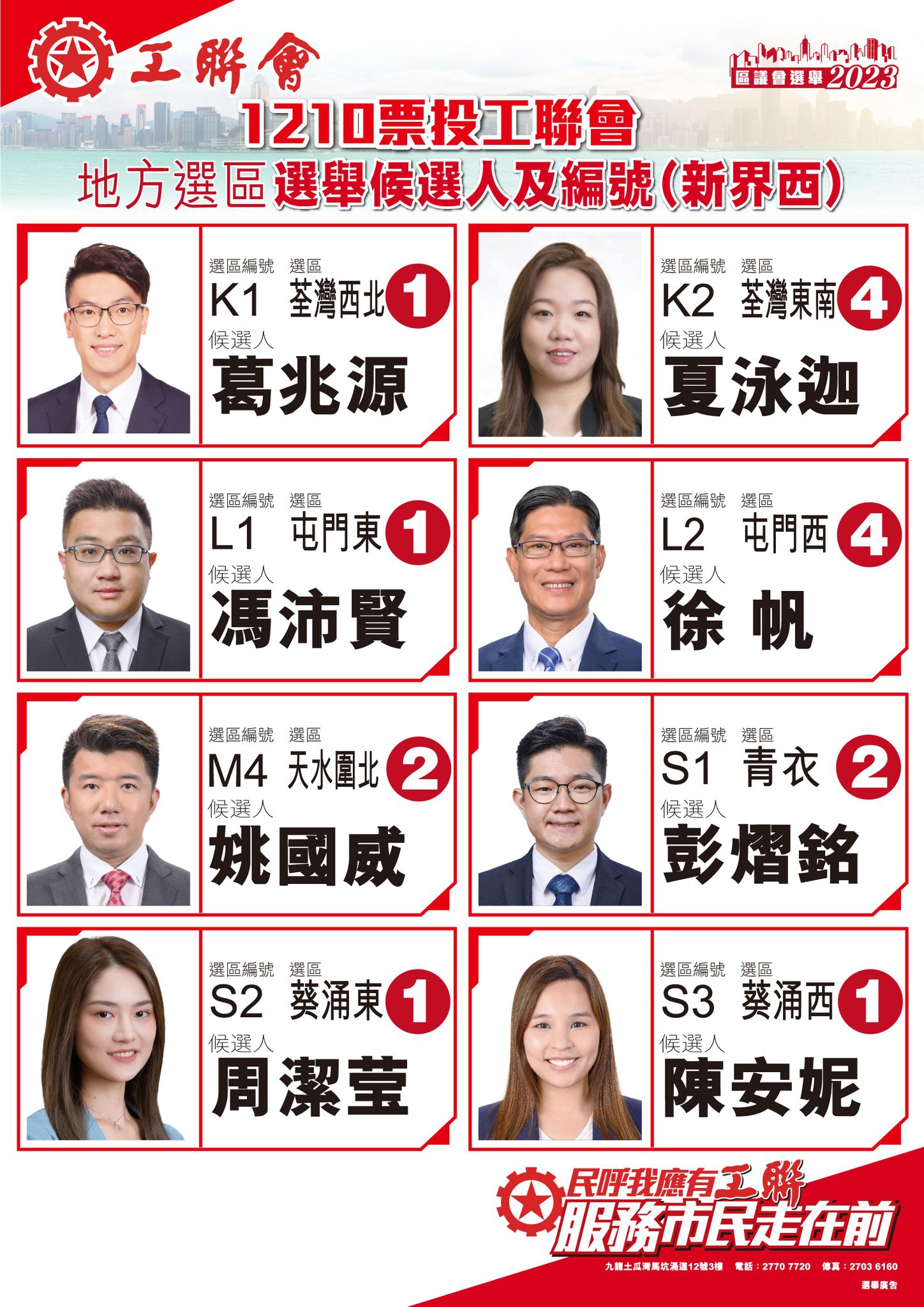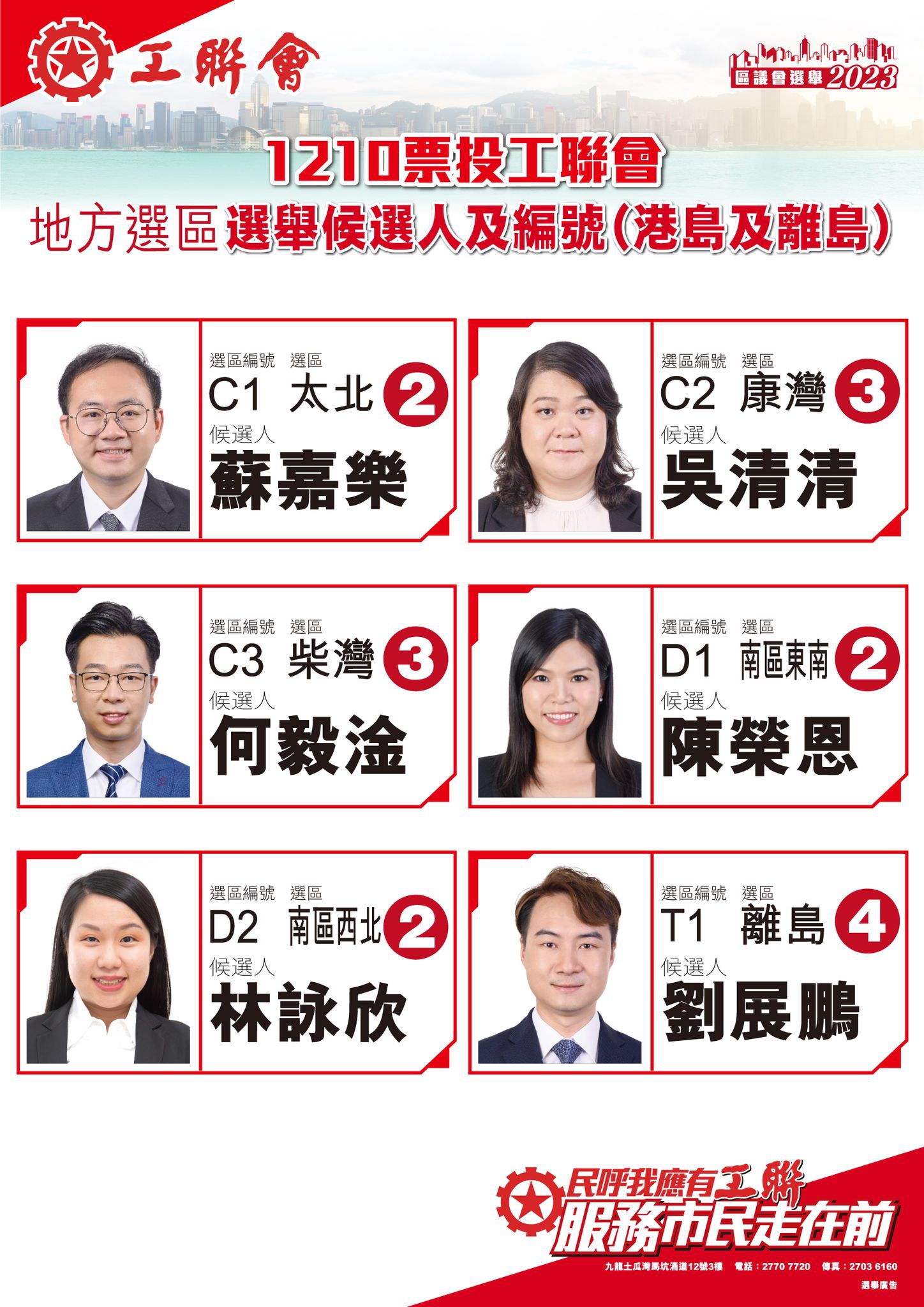 2023-11-14 【一票不能少 全投工聯會】區議會選舉1210齊投票 記得以下工聯地方選區候選人編號投票喇!