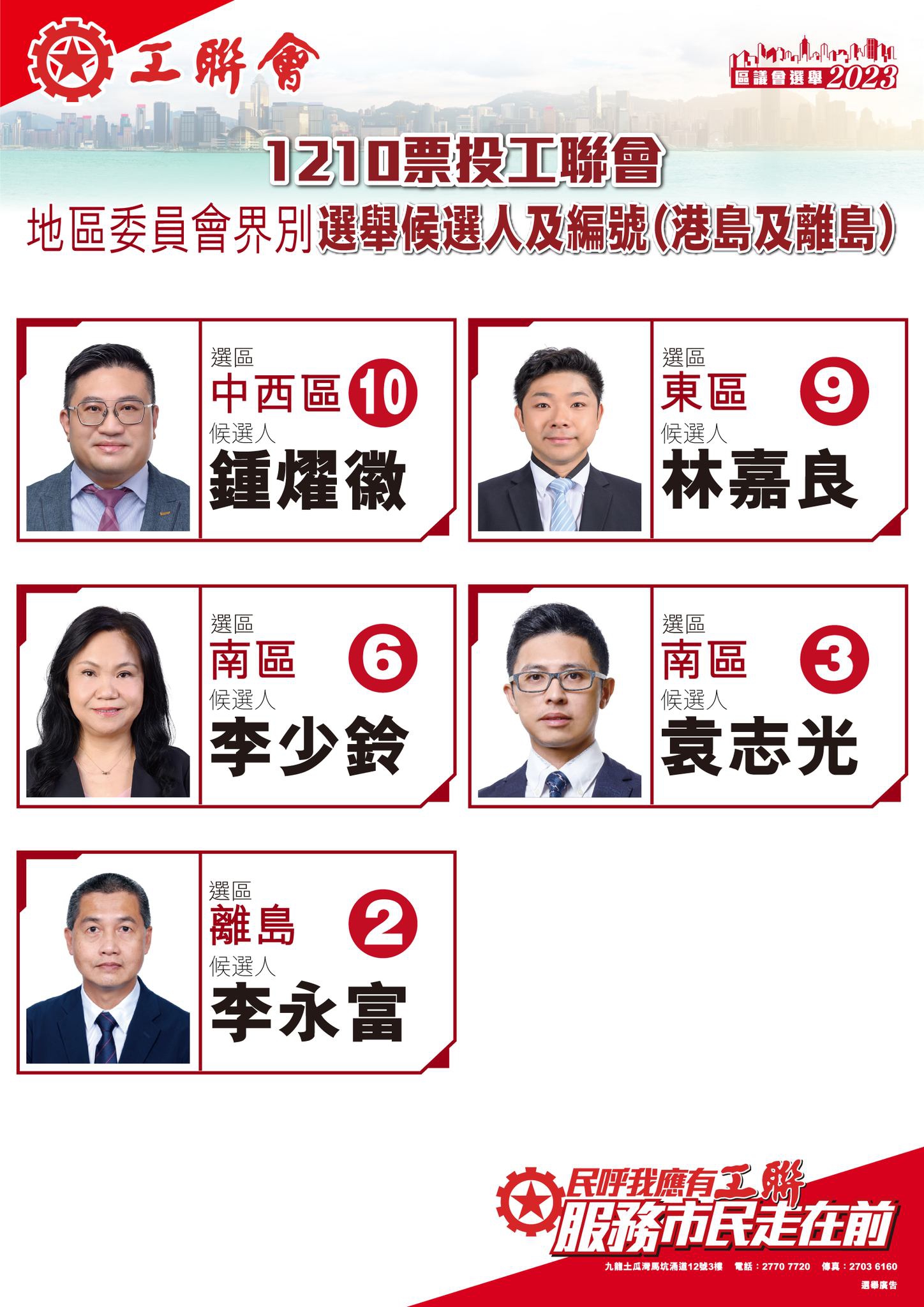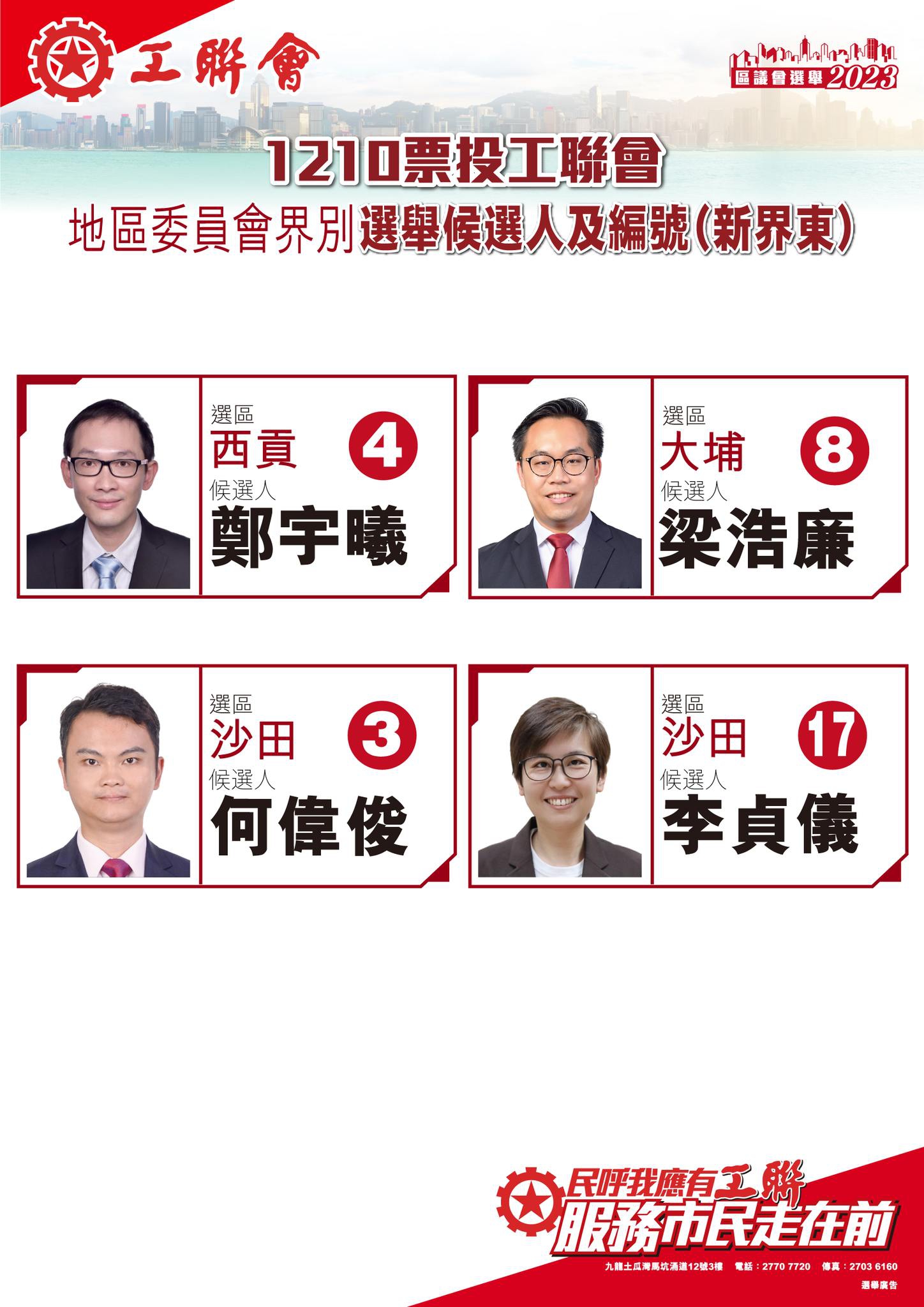 2023-11-14 【一票不能少 全投工聯會】區議會選舉1210齊投票 記得以下地區委員會界別選舉候選人編號投票喇!
