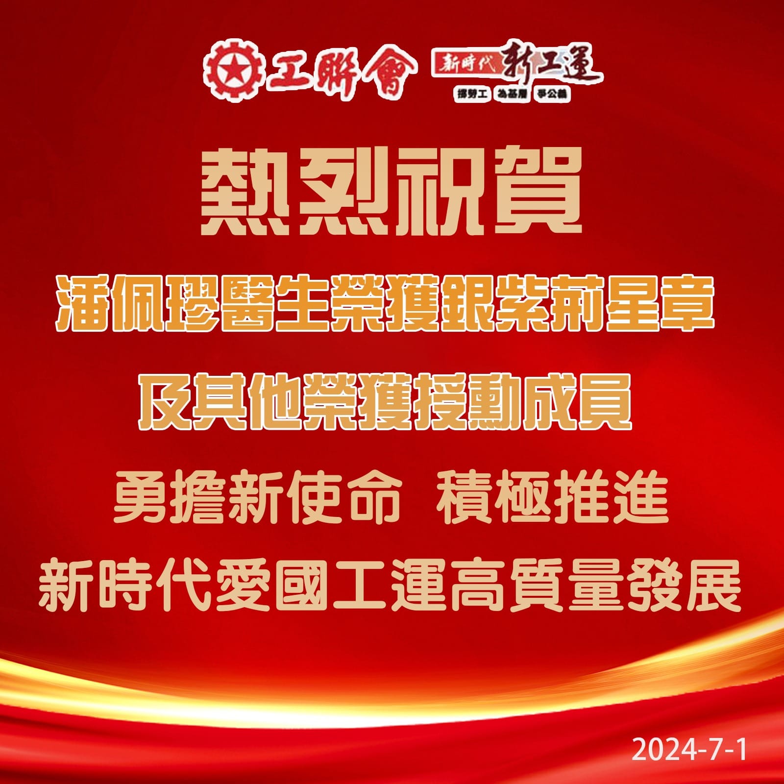 2024-07-01 【七一授勳】工聯會代表榮獲授勳 勇擔新使命 積極推進 新時代愛國工運高質量發展
