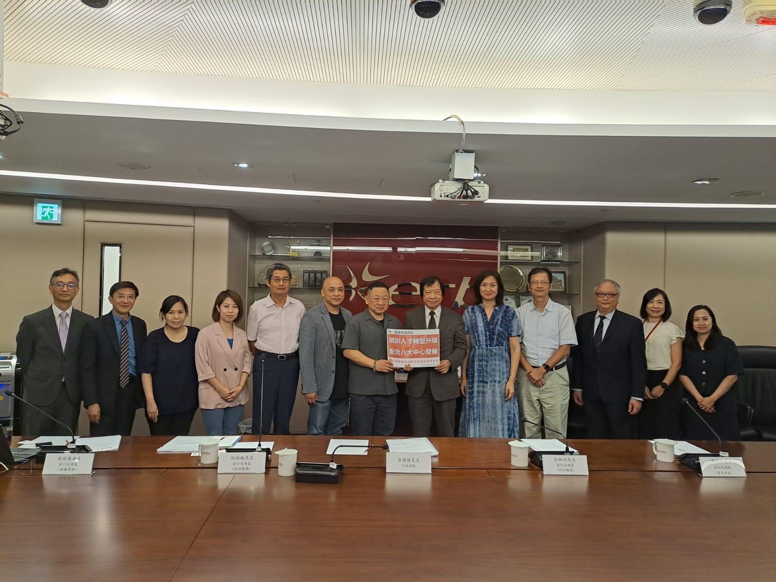 工聯會職業訓練及促進就業委員會(下稱:職訓就業委)一直旨在推動政府完善培訓發充業政策,提升本地僱員競爭力。 為積極推動香港人才升級轉型,及發展「八大中心」儲備高質發展動力。委員會在8月9日與僱員再培訓局行政總裁吳國強會晤並提交全面檢討再培訓意見書,希望局方加快改革鞏固香港發展。