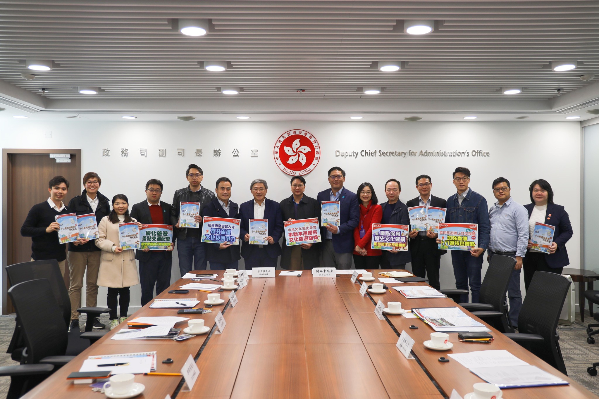 工聯會副理事長、立法會議員鄧家彪,郭偉强、陸頌雄和梁子穎,工聯會荃灣區議員葛兆源、屯門區議員馮沛賢、九龍城區議員黃文港、油尖旺區議員孫智敏、沙田區議員李貞儀、黃大仙區議員莫健榮、東區區議員吳清清,於日前(12月20日)約見政務司副司長卓永興及民政及青年事務局副局長梁宏正,遞交《十八區旅遊熱點研究報告》。