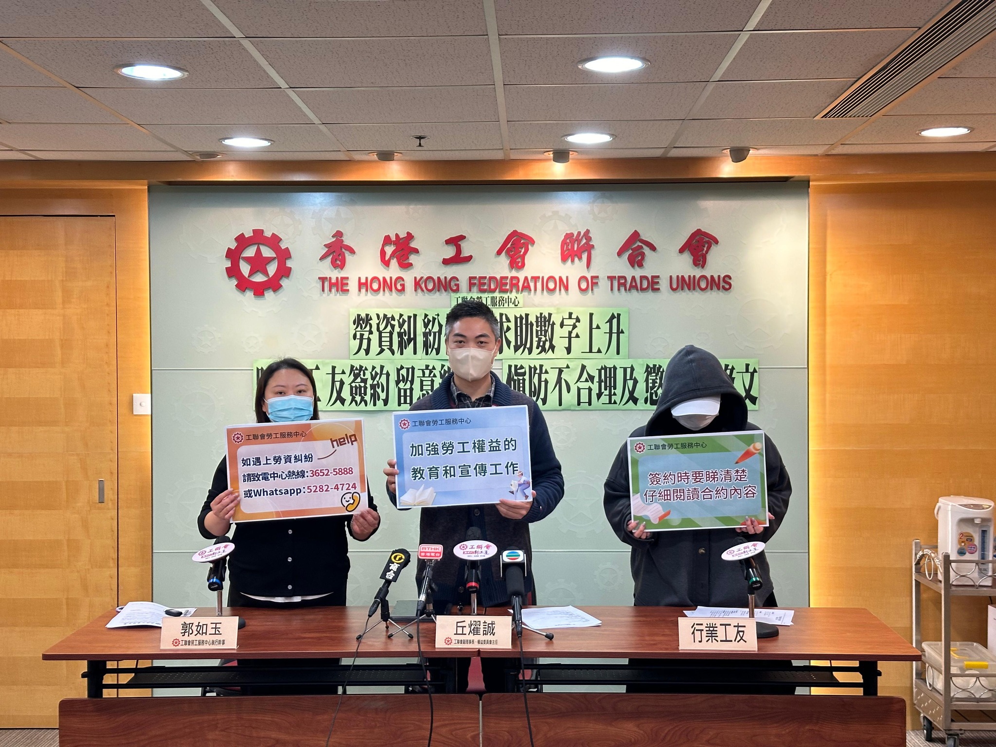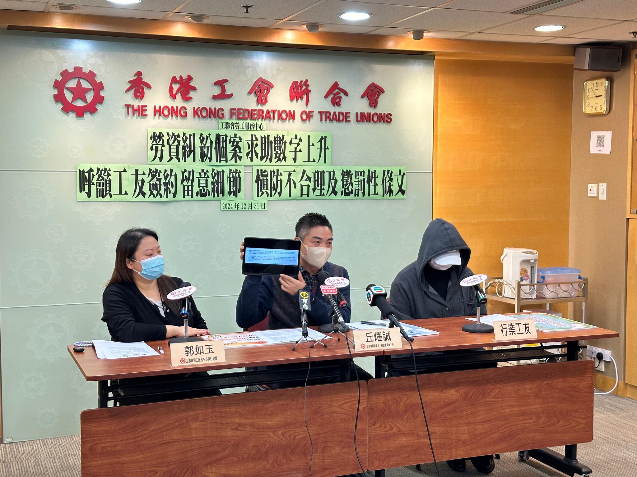 2024-12-31 工聯會勞工服務中心︰勞資糾紛個案求助數字上升 呼籲工友簽約留意細節 慎防不合理及懲罰性條文