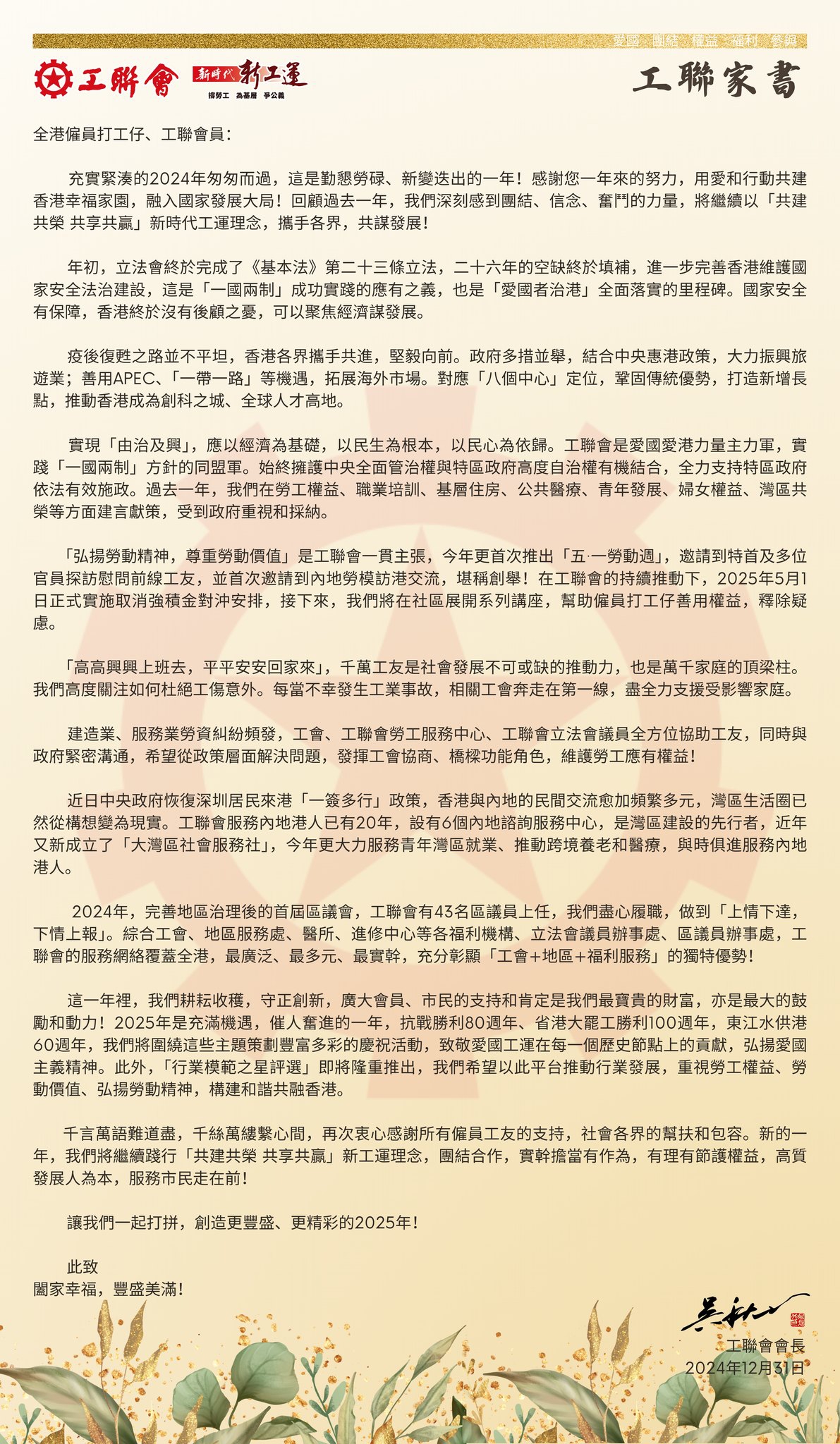 2024-12-31 【工聯家書】