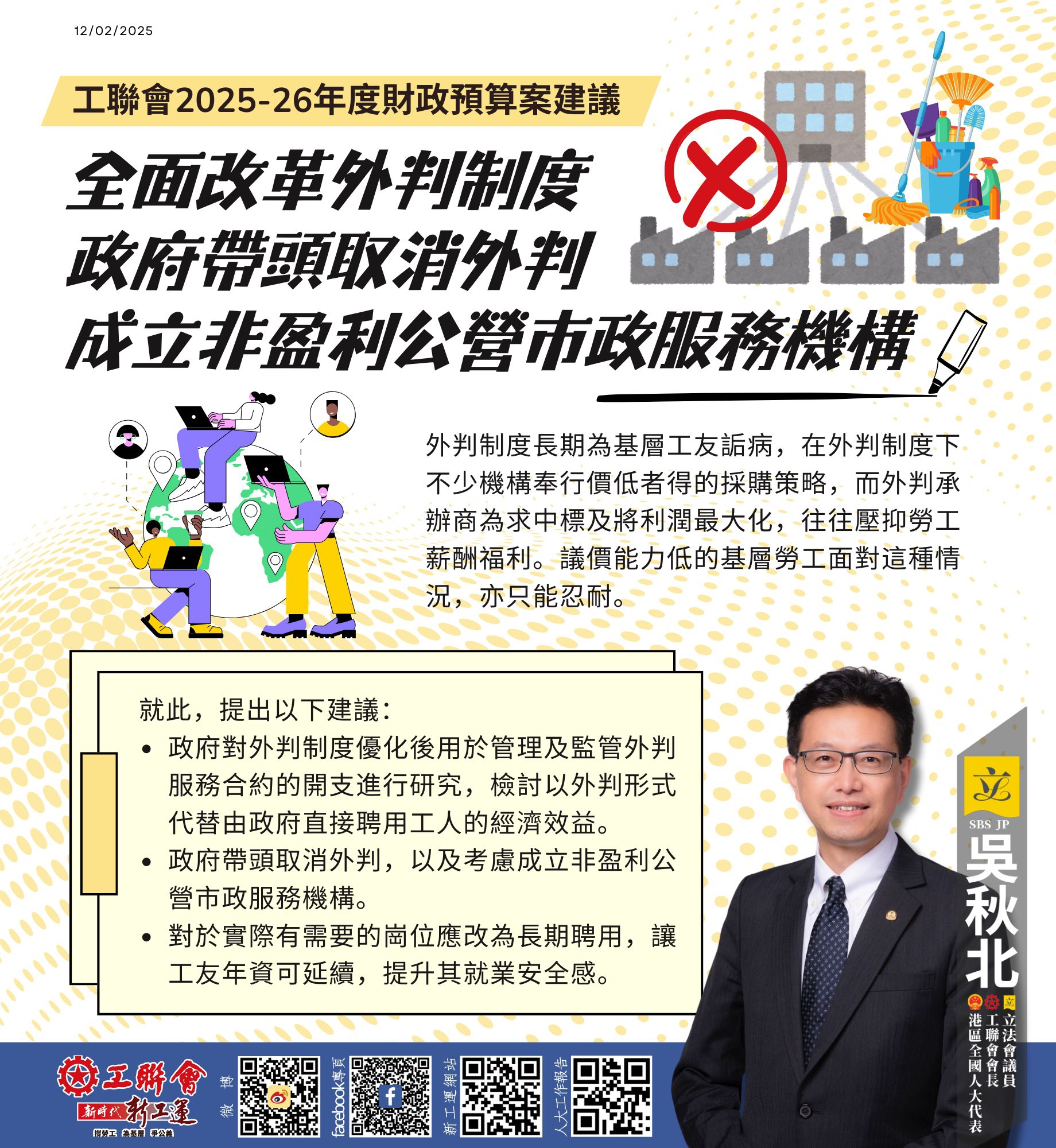 2025-02-13 吳秋北:全面改革外判制度 政府帶頭取消外判 成立非盈利公營市政服務機構