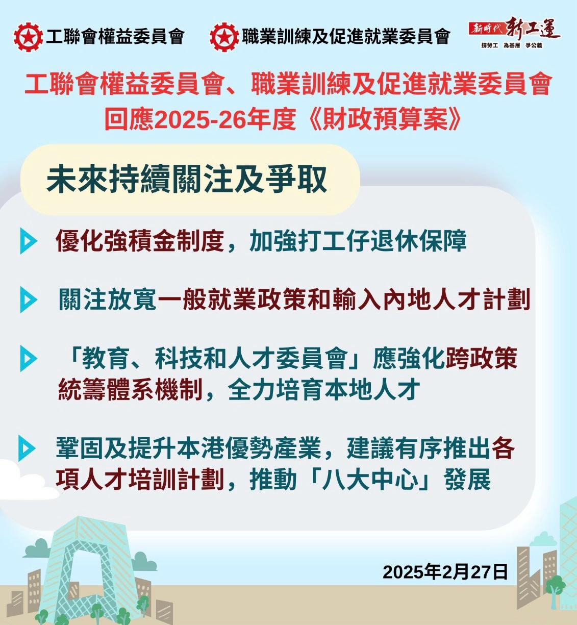 2025-02-27 工聯會權益委員會、職業訓練及促進就業委員會回應2025-26年財政預算案:冀持續優化強積金 加強本地人才培訓