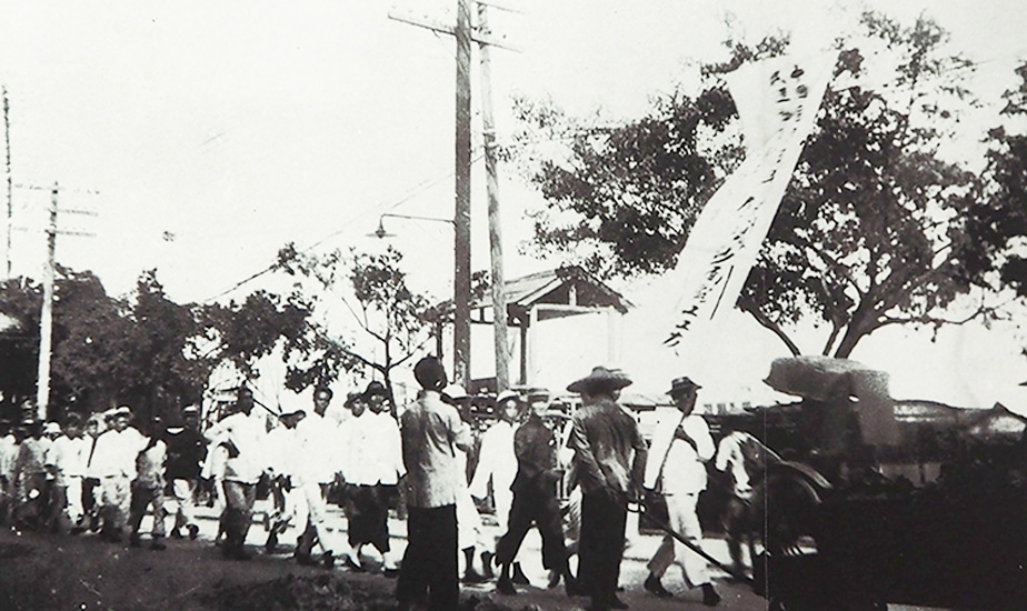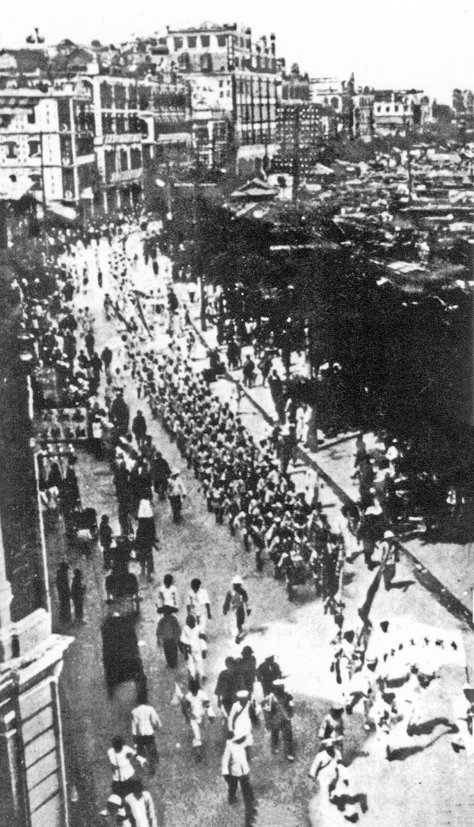 ▲ 1925年6月23日,廣州各界民眾示威遊行隊伍路過長堤馬路時的情形。 |