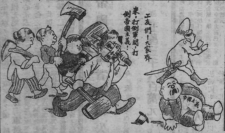 ▲ 坊間流傳著許多描繪當時工人階級奮起反抗帝國主義壓迫的漫畫。 |