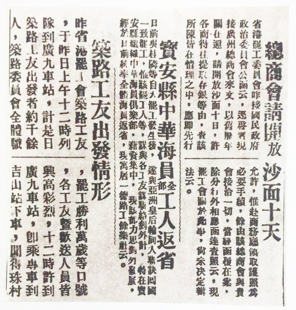 1925年6月23日,廣州發生英法士兵和巡捕射殺遊行群眾的「沙基慘案」,當消息傳到香港後,香港的罷工規模進一步擴大。至6月底,參與人數達25萬人。全國各地有1,700萬人直接參加罷工、罷課、罷市等抗議行動,歷時長達16個月之久,是上個世紀80年代以前世界工人運動史上時間最長的一次大罷工,展現了中國工人階級的團結力量和奮鬥精神,揭開了中國工會運動新篇章。