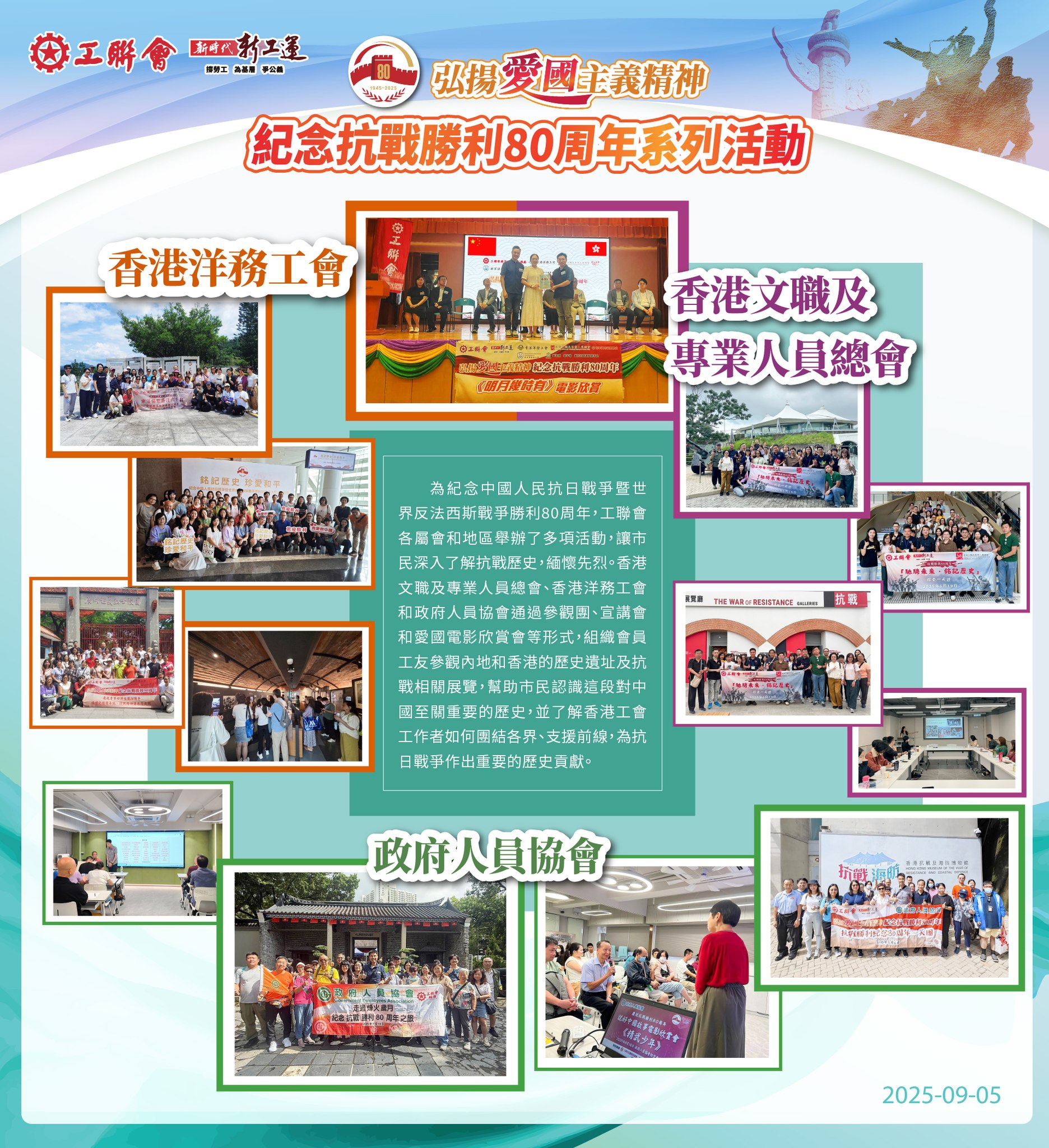 2025-09-04 文職及專業人員、洋務、政府人員等工會舉辦系列活動 回顧香港工會在抗日戰爭中的貢獻