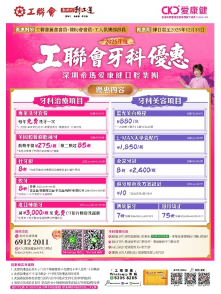 - WhatsApp預約:https://bit.ly/工聯會員洗牙